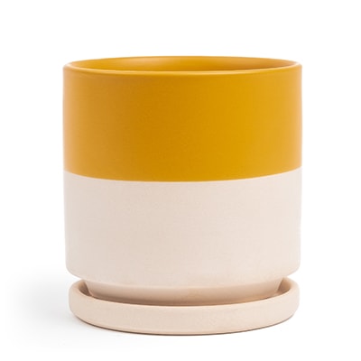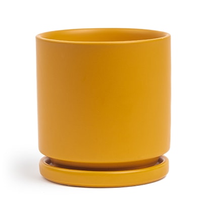 The Gemstone Collection features sleek and sturdy one-of-a-kind shapes are fashioned from high-quality porcelain. The color Mustard symbolizes warmth, creativity, and optimism. This cheerful color infuses sunlight and happiness into moods and rooms. This pot color is one of our best-sellers!